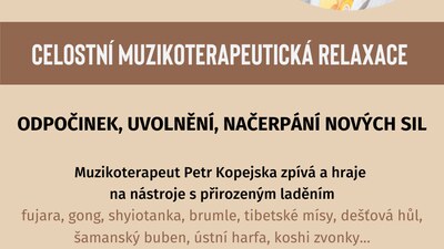 Muzikoterapeut Ing. Petr Kopejska Vám opět nabídne odpočinek, relaxaci a načerpání nových sil.