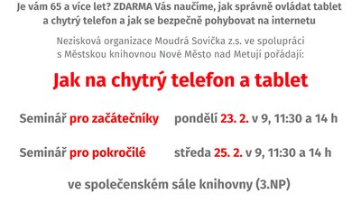 Pořádá Městská knihovna Nové Město nad Metují ve spolupráci s Moudrou sovičkou v rámci programu SDRUK Digitální odysea