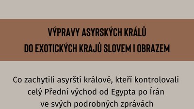 Zveme Vás ve čtvrtek 19. prosince na další přednášku z cyklu doktora Pavla Čecha. Tentokrát nese název Výpravy asyrských králů do exotických krajů. Co zachytili asyrští králové, kteří kontrolovali celý Přední východ od Egypta po Írán ve svých podrobných zprávách a na impozantních reliéfech, nám slovem i obrazem Mgr. Pavel Čech, Ph.D.