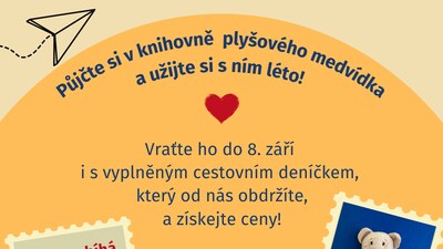 Půjčte si v knihovně plyšového medvídka a užijte si s ním léto! Akce bude probíhat od 16. června do 8. září 2025. A jak to vlastně funguje? Na dětském oddělení si vyberete plyšového medvídka, kterého si od nás vypůjčíte. O prázdninách ho můžete brát na výlety, k vodě či na návštěvy k prarodičům a své zážitky s ním si budete moci zapisovat do deníčku, který od nás dostanete. Plyšáčka i s vyplněným cestovním deníkem následně do 8. září vrátíte a obdržíte drobnou odměnu. Nejpovedenější a nejnápaditější deníky nakonec oceníme hlavními cenami.
