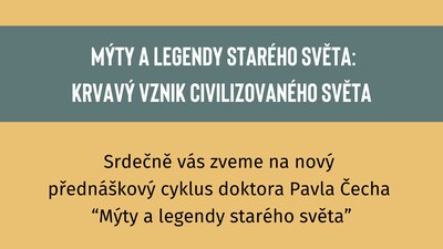 Srdečně vás zveme na nový přednáškový cyklus doktora Pavla Čecha “Mýty a legendy starého světa”. O čem vyprávějí a jaké je jejich poselství? To se dozvíte na první přednášce s názvem „Krvavý vznik civilizovaného světa“.