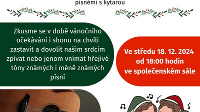 Zveme Vás na posezení s vánočními koledami a autorskými písněmi s kytarou.