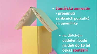 Po celý týden budeme poskytovat pro nově zapsané čtenáře roční členství ZDARMA. Naši čtenáři mohou využít čtenářské amnestie, kdy jim promineme sankční poplatky za upomínky. Na dětském oddělení se mohou děti do 15 let zapojit do soutěžní křížovky.