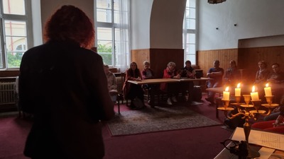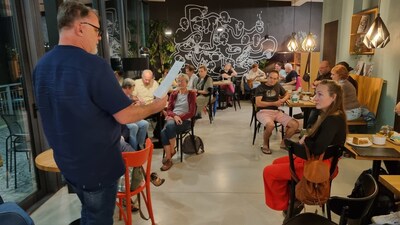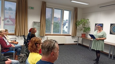 Ve středu 18. září proběhl další ročník společného celorepublikového čtení novinek současné evropské literatury. Sešli jsme se na nově vybavené zahradě městské knihovny, pokračovali jsme do novoměstského kláštera a předčítání jsme zakončili posezením v kavárně Rozlitý kafe. Poslechli jsme si ukázky z knih: Rozložíš paměť, Lucie v lese s Čímsi, Časokryt, Romance z druhého břehu, Pivo na Loiře, Mít a být v podání Lucie Kotěrové, Lucie Peterkové a Jiřího Raichla.