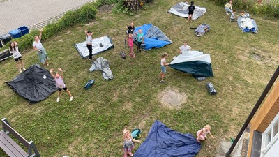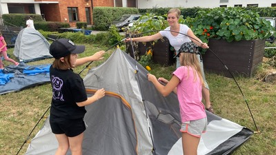 Ze dne 21. na 22. srpna se na zahradě knihovny uskutečnilo táboření pro děti školního věku. Účastníci si užili odpoledne plné venkovních her, šipkované, hledání pokladu a samozřejmě opékání špekáčků. Někteří dobrodruzi strávili noc ve stanu, zatímco jiní si užili jen odpolední program.