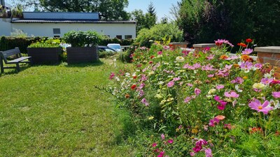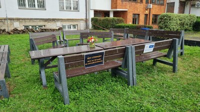 Upravili jsem horní část zahrady přiléhající k budově, revitalizovali trávník, nainstalovali jsme lavičky, stoly a vyvýšené záhony z recyklovaného plastu, které budou sloužit akcím knihovny a dalších zájemců o organizovaná setkávání v centru města s využitím zázemí knihovny. Velmi nám pomohly sklautky z dívčího oddílu Vydry z Nového Města nad Metují.
